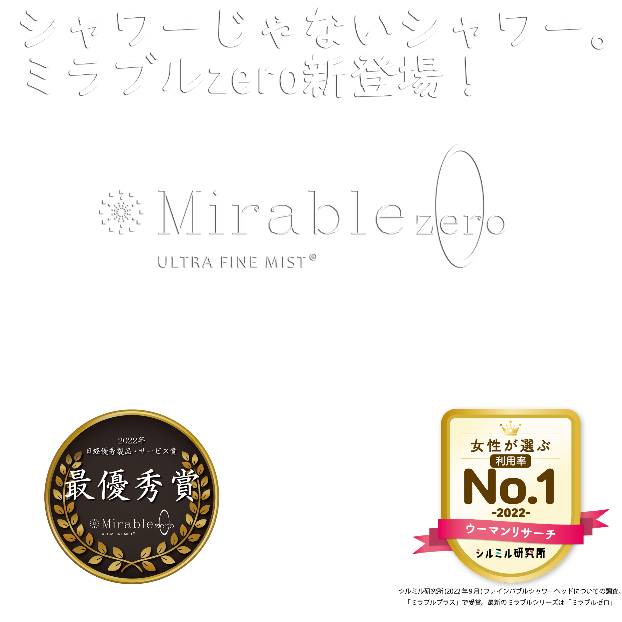 ミラブルzeroは、シャワーを変えた画期的なアイテム。ウルトラファインバブルを発生させる目的別の3つのモードが先進性を更に進化させました。